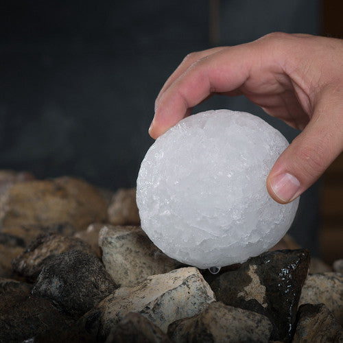 Formen laver en lille fordybning i kuglen hvori der dryppes essentielle olier efter ønsket intensitet. Iskuglen lægges efterfølgende oven på saunaovnens sten.